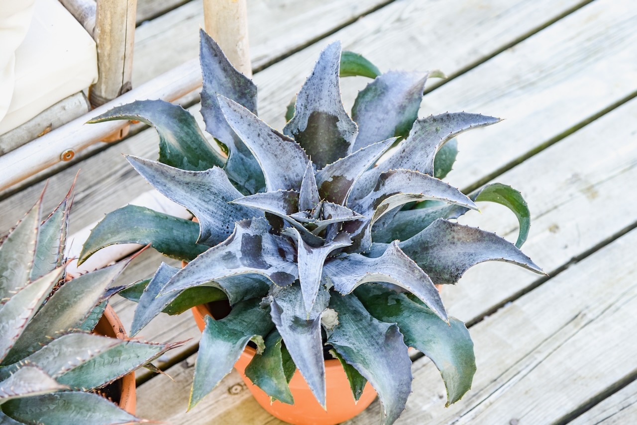 Die Mangave Mad About ™ Night Owl ist eine schöne Perennials aus unserem Sortiment, bekannt für ihre Zuverlässigkeit. Diese Pflanze wird etwa 30 cm hoch und bildet einen schönen Horst. Die charakteristische Blüte findet im Zeitraum none statt. Der Blütenstand ist ein echter Blickfang im Beet. Für das beste Ergebnis platzieren Sie die Mangave Mad About ™ Night Owl in voller Sonne. Die Pflanze ist gut winterhart. Diese Pflanze benötigt keine Kälteperiode, um zu blühen. Diese Sorte ist sortenrechtlich geschützt unter der Nummer EUA/PP38403.