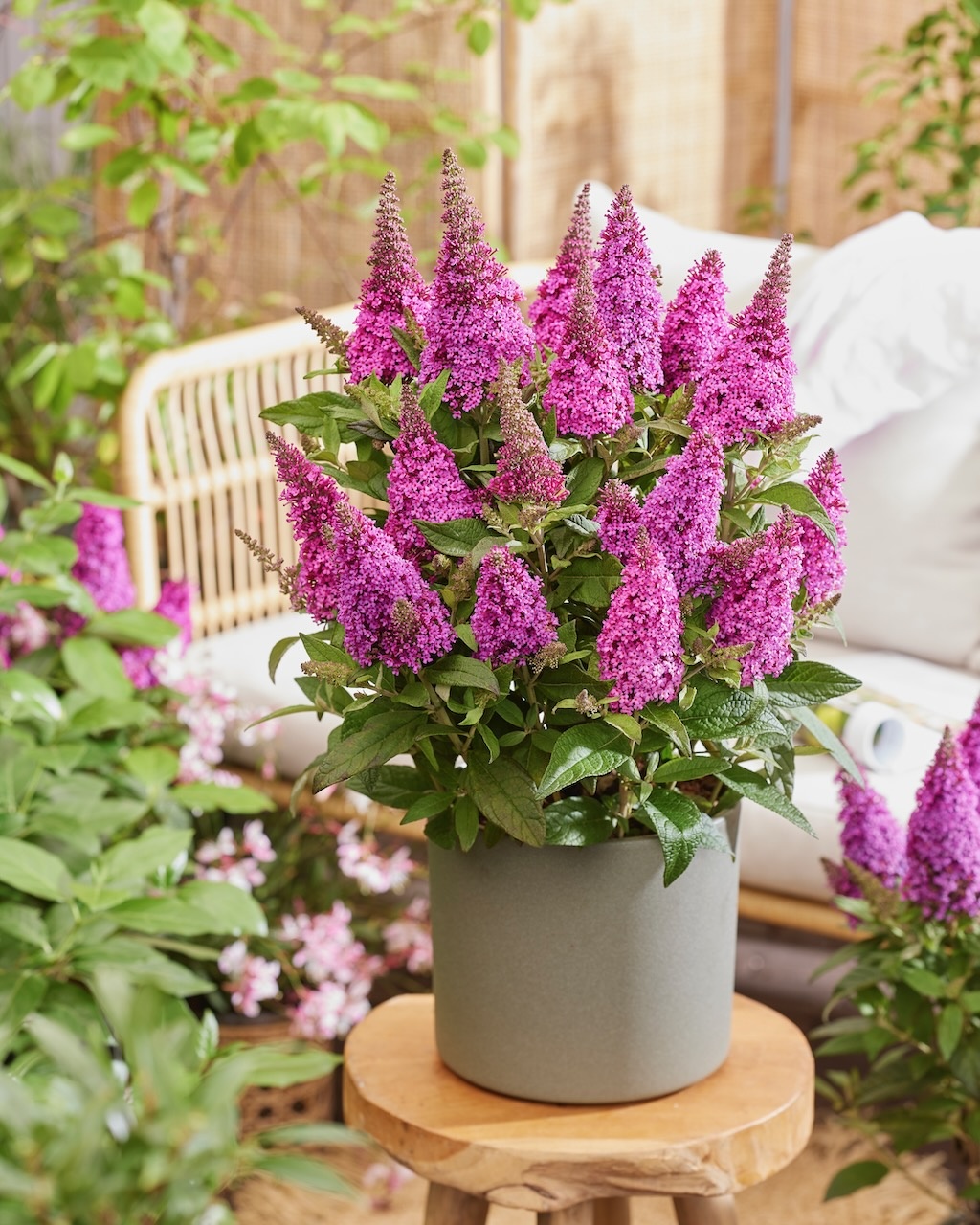 Ontdek de Buddleja Butterfly Candy ™ Cerise, een veelzijdige Woody Perennials die een sieraad is voor elke tuin. Deze cultivar, met de wetenschappelijke naam Buddleja davidii 'Butterfly Candy ™ Cerise', bereikt een volwassen hoogte van circa 80 cm. De opvallende bloei vindt plaats in de periode juni tot en met september. Een favoriet bij bestuivers zoals bijen en vlinders. Geef de Buddleja Butterfly Candy ™ Cerise een standplaats in de volle zon voor een rijke bloei. De winterhardheid is uitstekend; de plant is goed winterhard. Deze plant heeft geen koudeperiode nodig om te bloeien. Deze cultivar is kwekersrechtelijk beschermd onder nummer EUA/PAF.